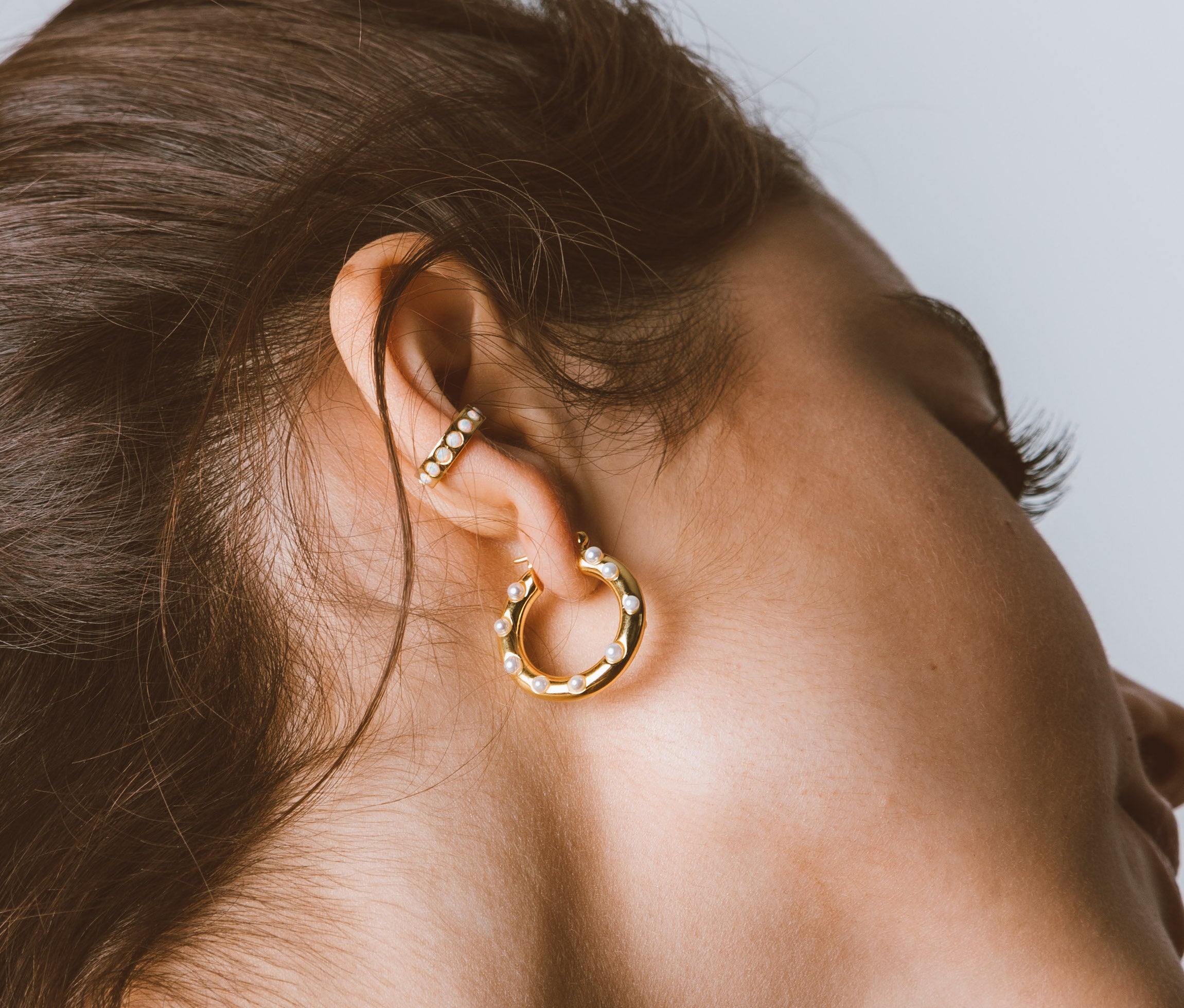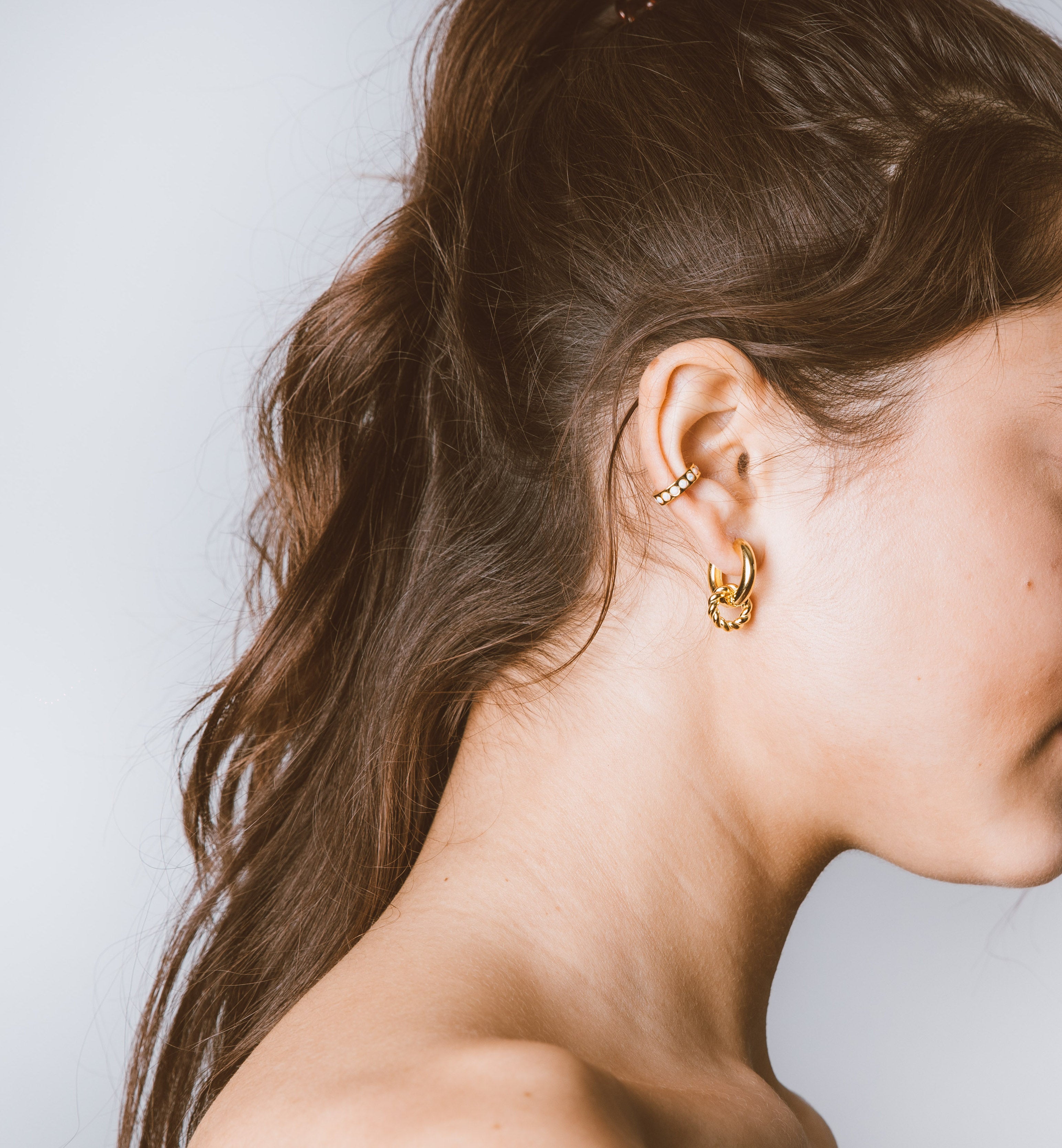 A thick layer of 18k gold over 925 sterling silver, designed to be durable and hypoallergenic—made for everyday wear with the look and feel of solid gold.