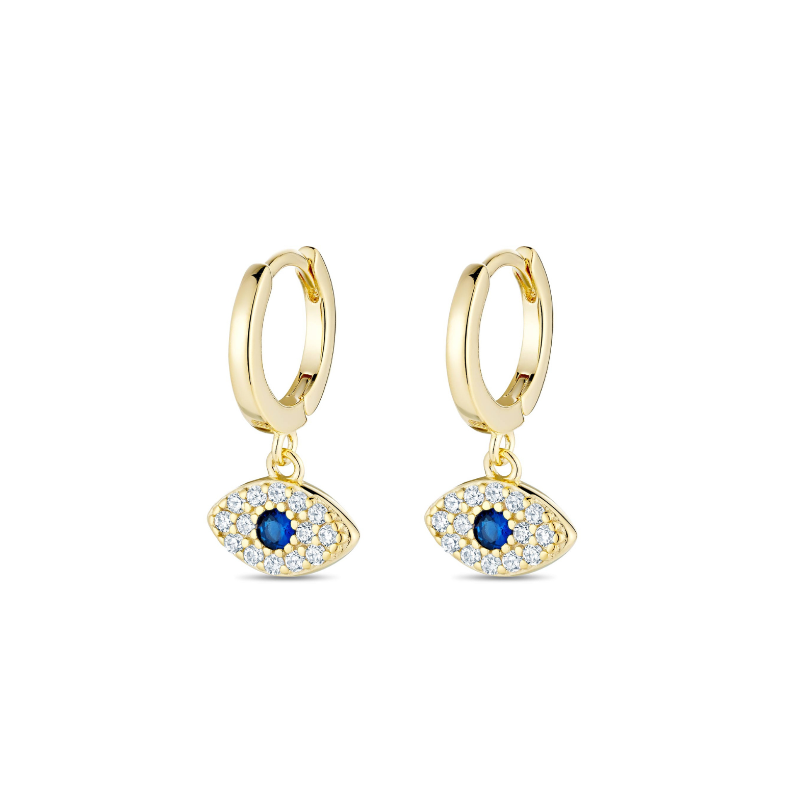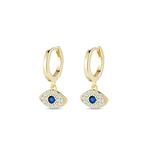 The Good Vibe Earrings are dainty yet powerful. It consists of a huggie earring with an evil eye drop. The evil eye is radiant and it has a blue stone in the center.