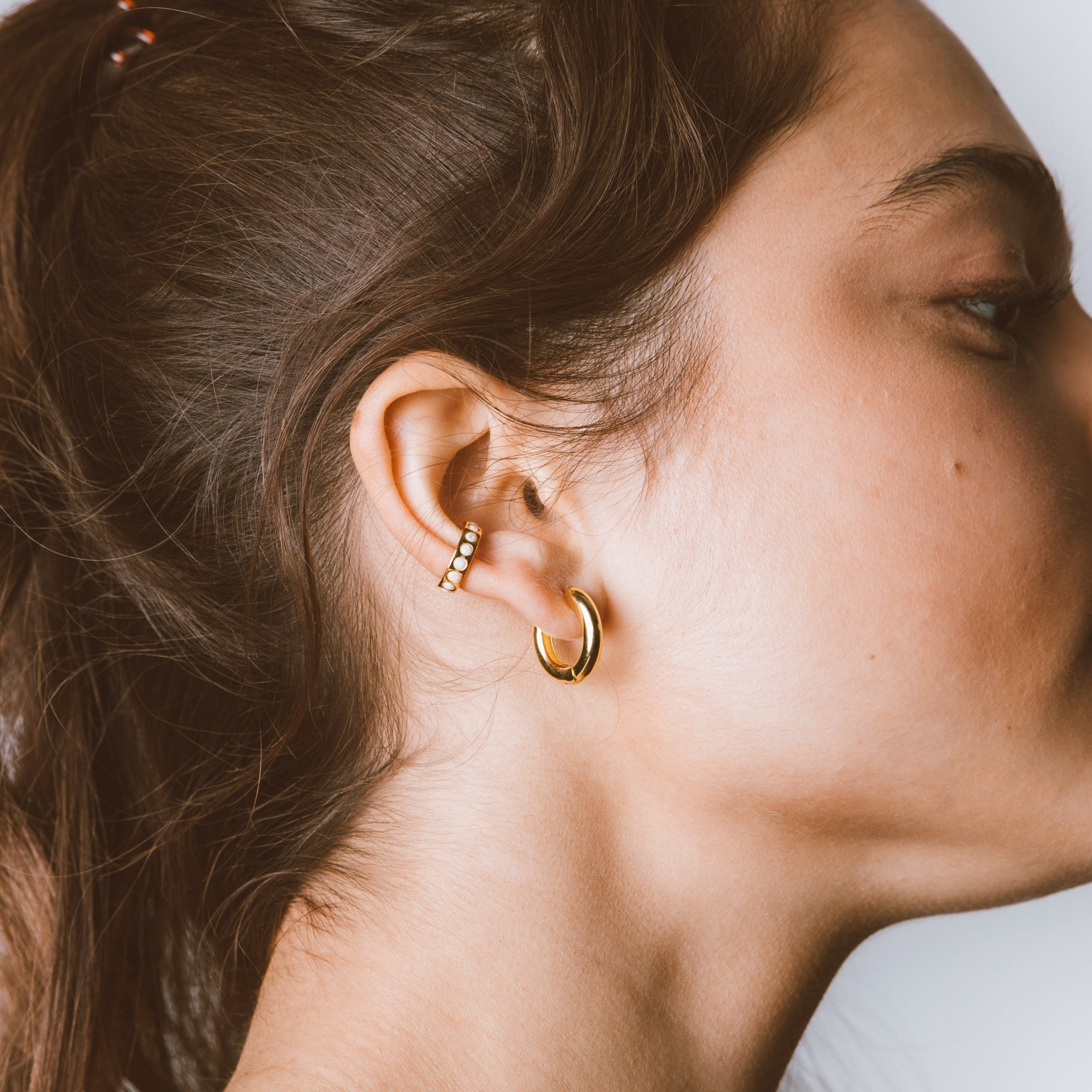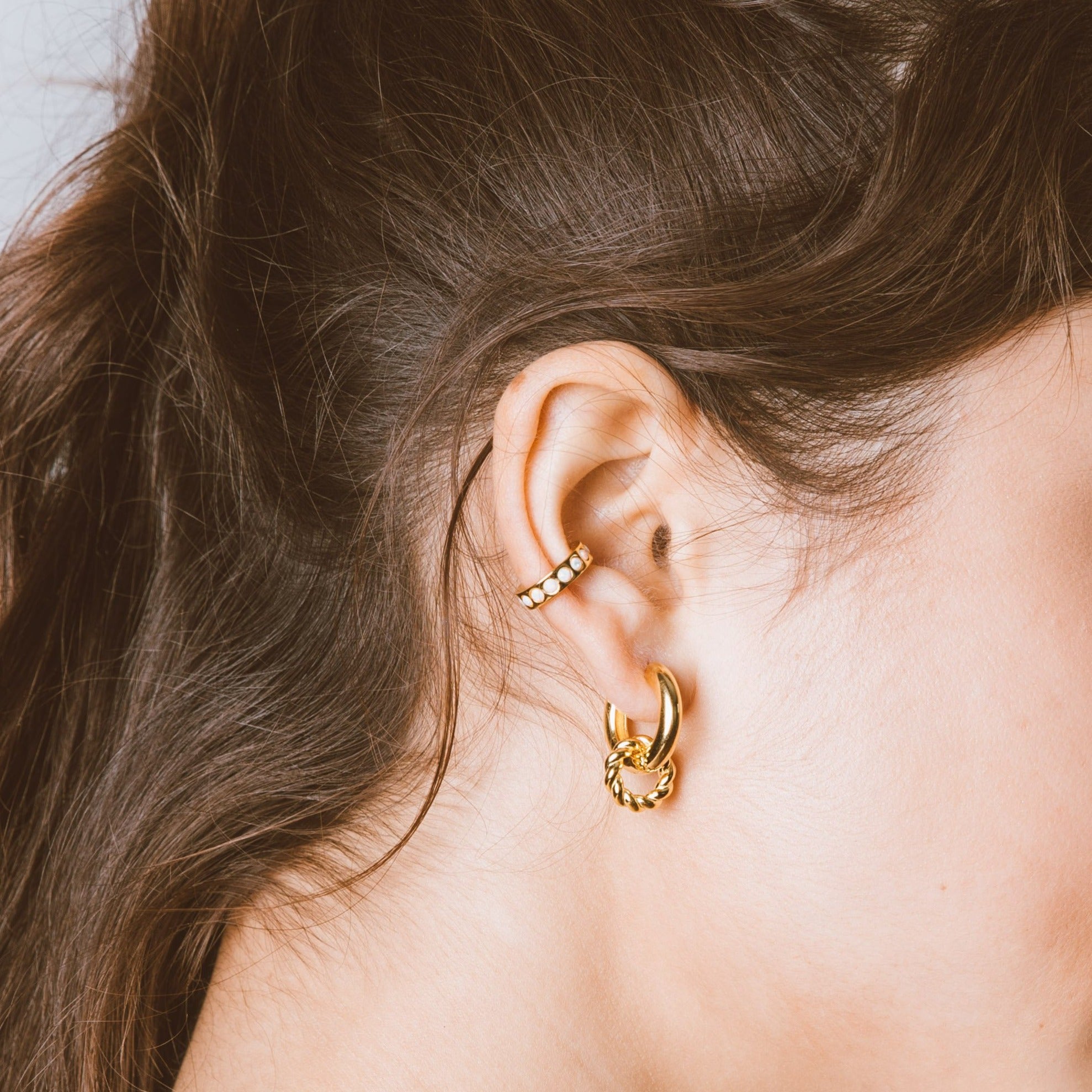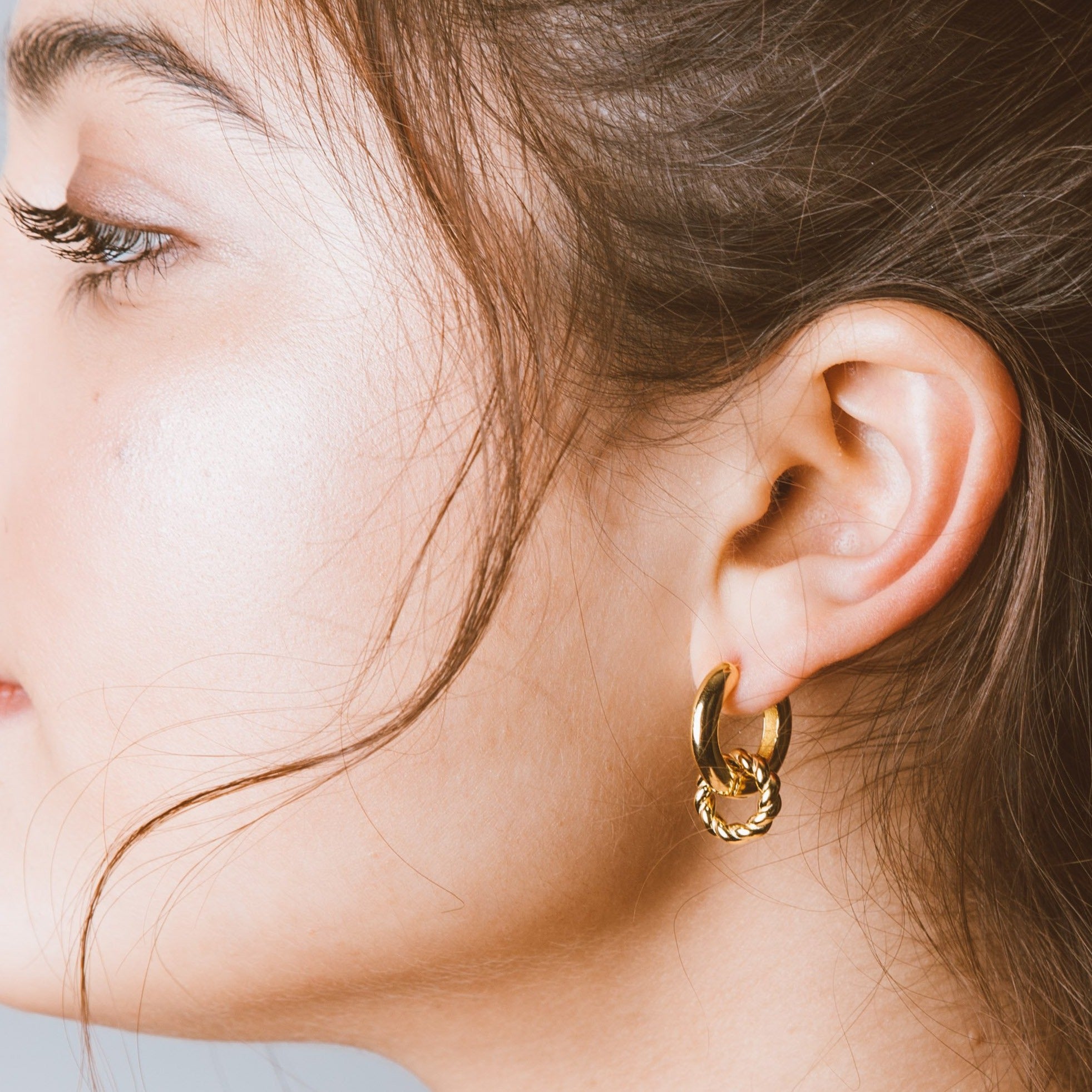 Simply remove the extension and they turn into the perfect simple gold hoops.