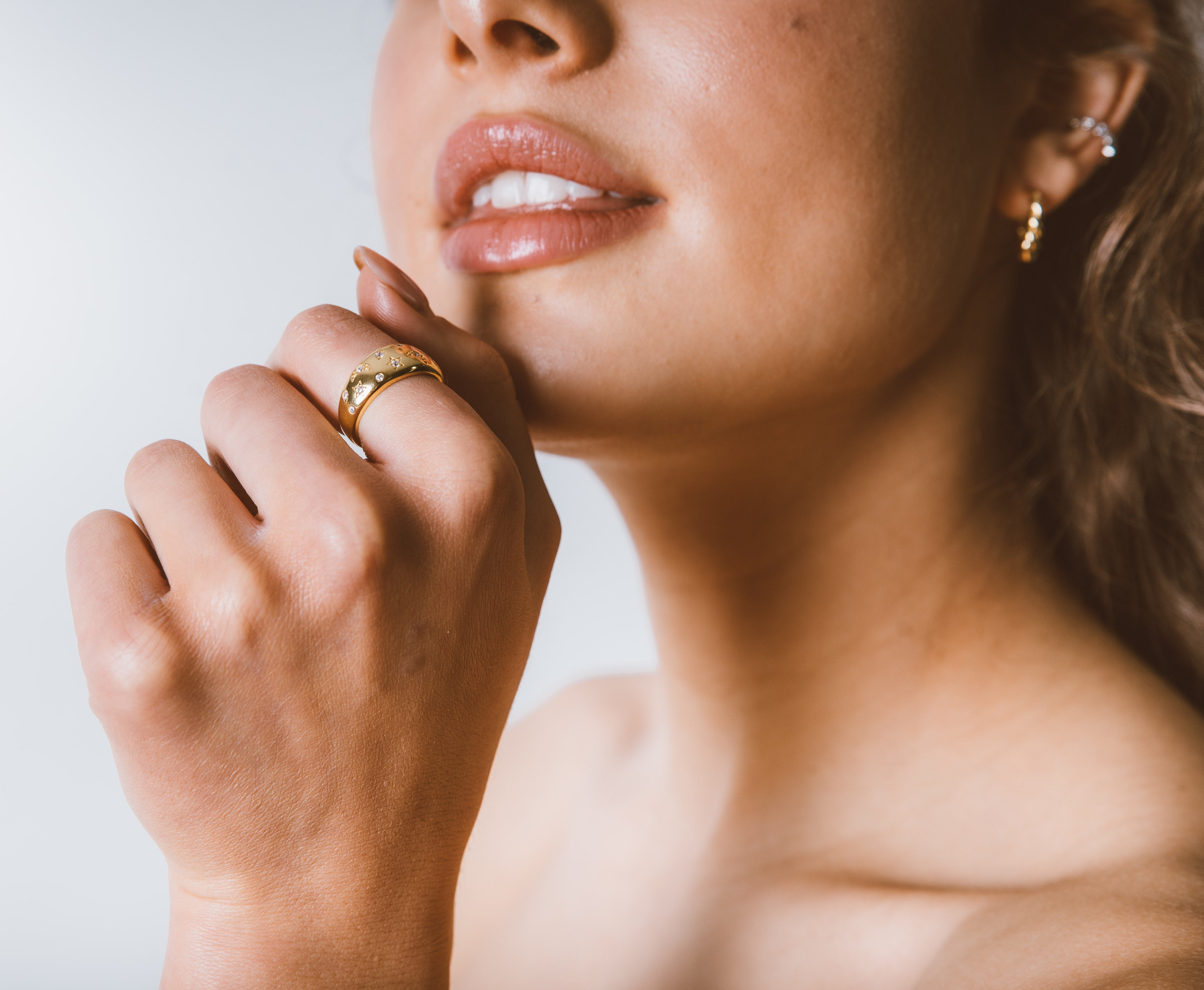 A thick layer of 18k gold over 925 sterling silver, designed to be durable and hypoallergenic—made for everyday wear with the look and feel of solid gold.