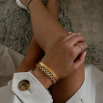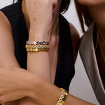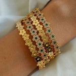 Add some flowers to your wrist stack with this beautiful, brass 18k gold-plated bracelet. The perfect stretchy, stackable wristband bracelet elevates every look.